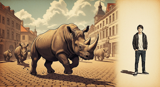 गेंडा बनने की कहानी – जब इंसान भीड़ की मानसिकता में खो जाता है